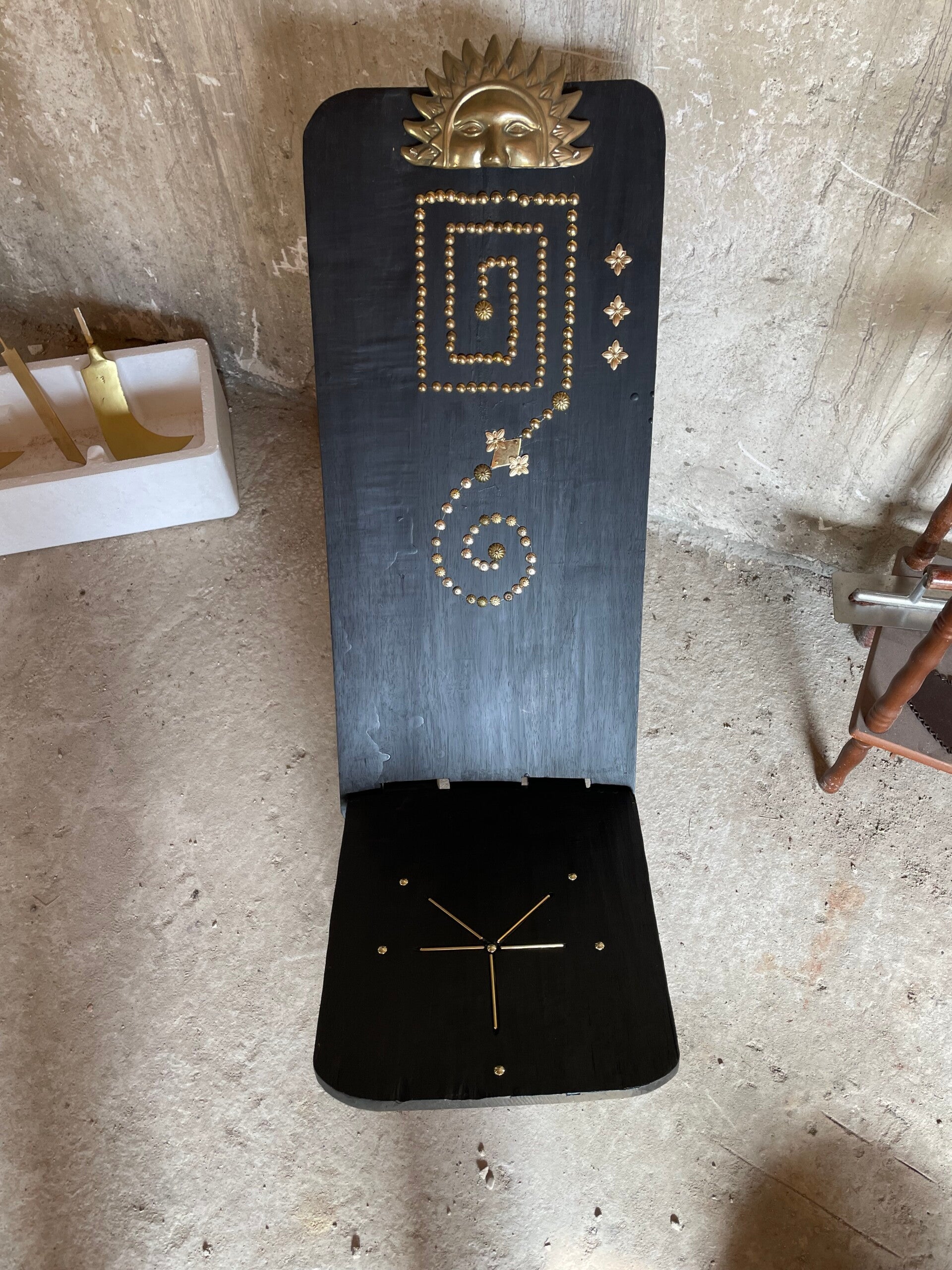 Chaise pliante avec trèfle à quatre feuilles et baguette laiton