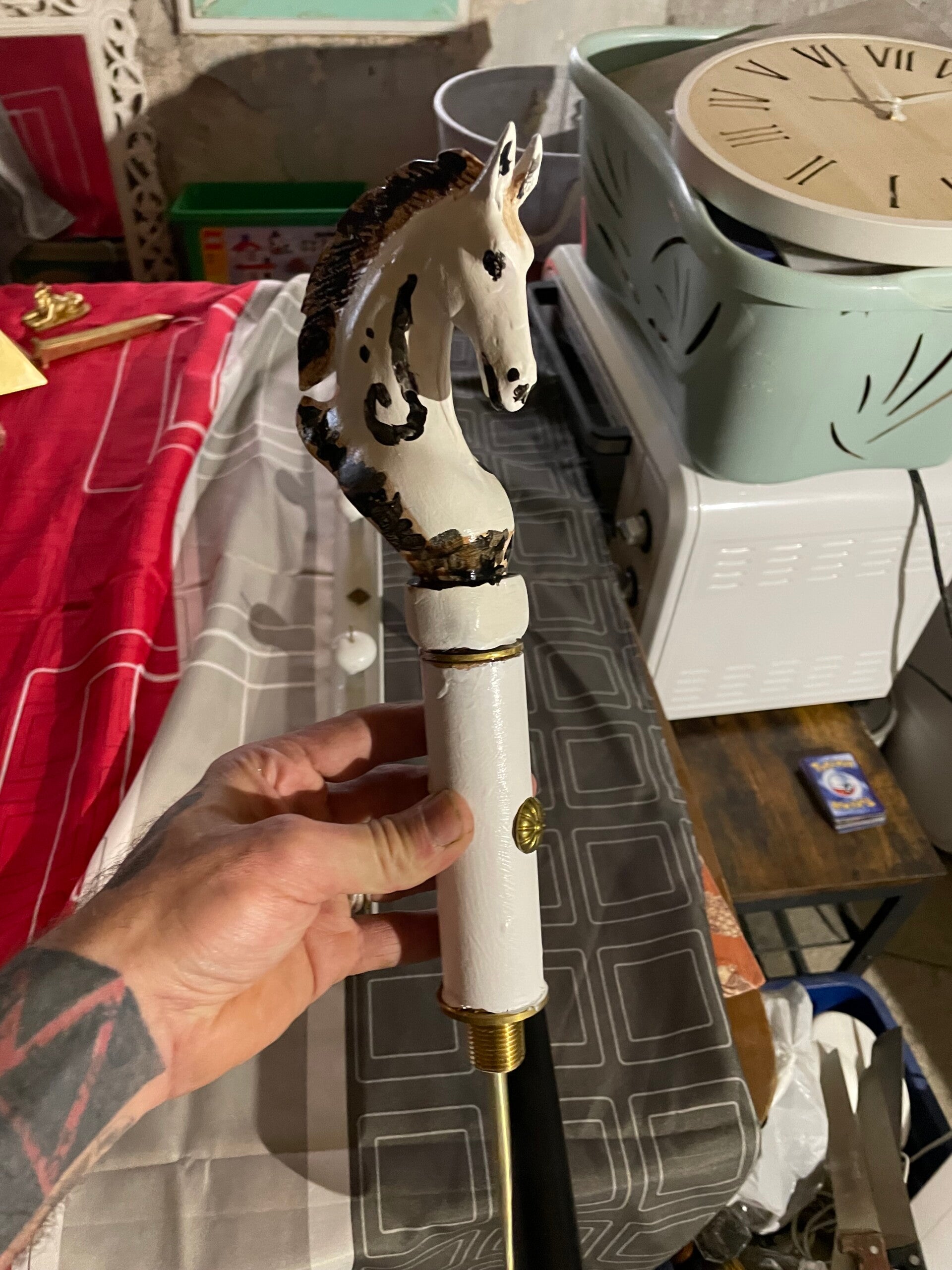 Sabre en bois de hêtre 35 mm dague incorporé support compris longueur 104 cm tête boule de métal peinture or haute qualité lame bronze poli