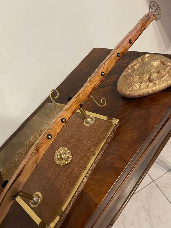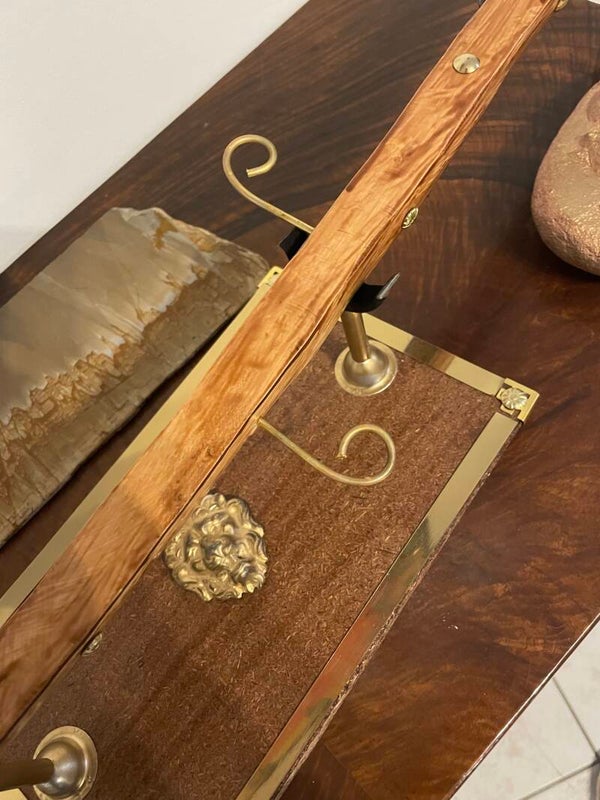 Bois de buis vernis acajou brillant tète bronze et lame laiton polie support horizontal ou vertical longueur 103cm